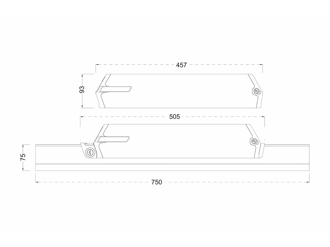 De Reention Dorado behuizing bestaat in verschillende afmetingen (Plus, Pro, Max) en lengtes. Dit product betreft de lange 48V versie van 457 mm.