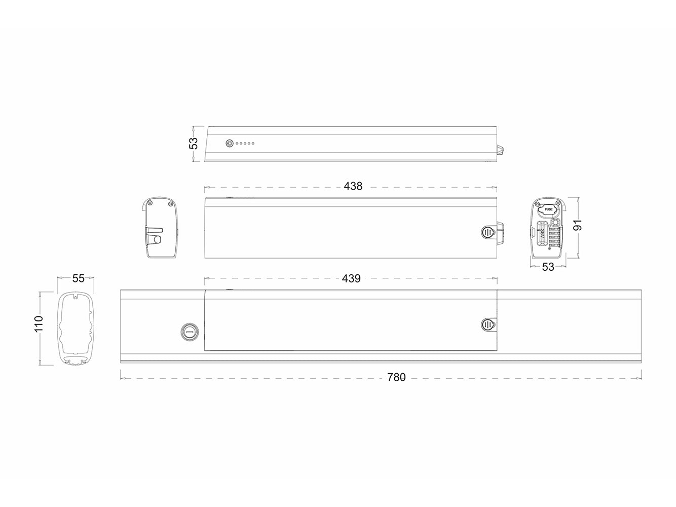 Afmetingen: 438 x 91 x 53 mm